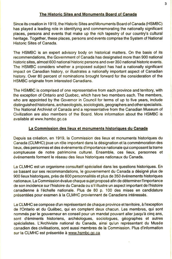 Home Page | Front Page | NASCA | Message Centre << Previous Page | Parks Canada Plaquing Ceremony | Next Page >>